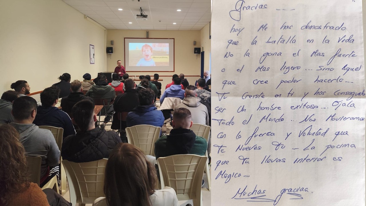 El 11 de febrero la visitamos por cuarta vez y la sala se quedó pequeña. Vinieron incluso varios funcionarios y la charla empapó a los asistentes desde el primer momento. El mérito fue de ellos y de quienes trabajan todos los días por un proceso que demuestra dejar huella y que es capaz de propiciar mensajes espontáneos tan emocionantes como el que compartimos en la siguiente imagen.