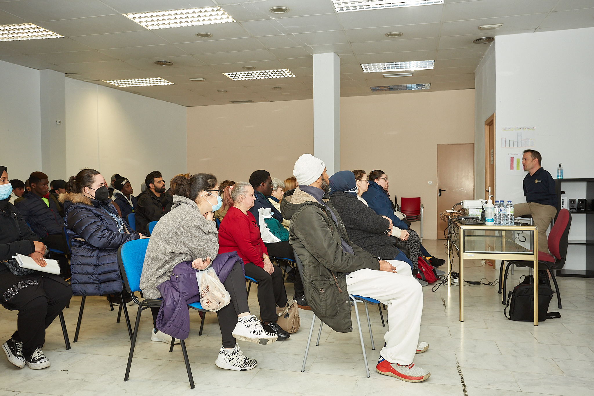 Medio centenar de usuarios, de los muy diversos y completos programas que esta entidad social ofrece a las personas en riesgo efectivo de exclusión, abarrotaron la sala y siguieron con interés los mensajes y reflexione que compartimos a lo largo de la hora que duró la charla.
